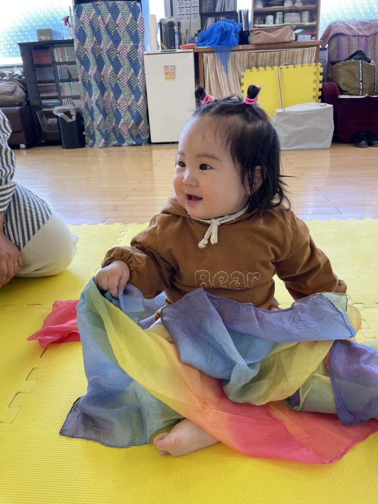 じっと見てる子、音楽に合わせて体を動かす子、子ども達の反応も学び方も様々です。
