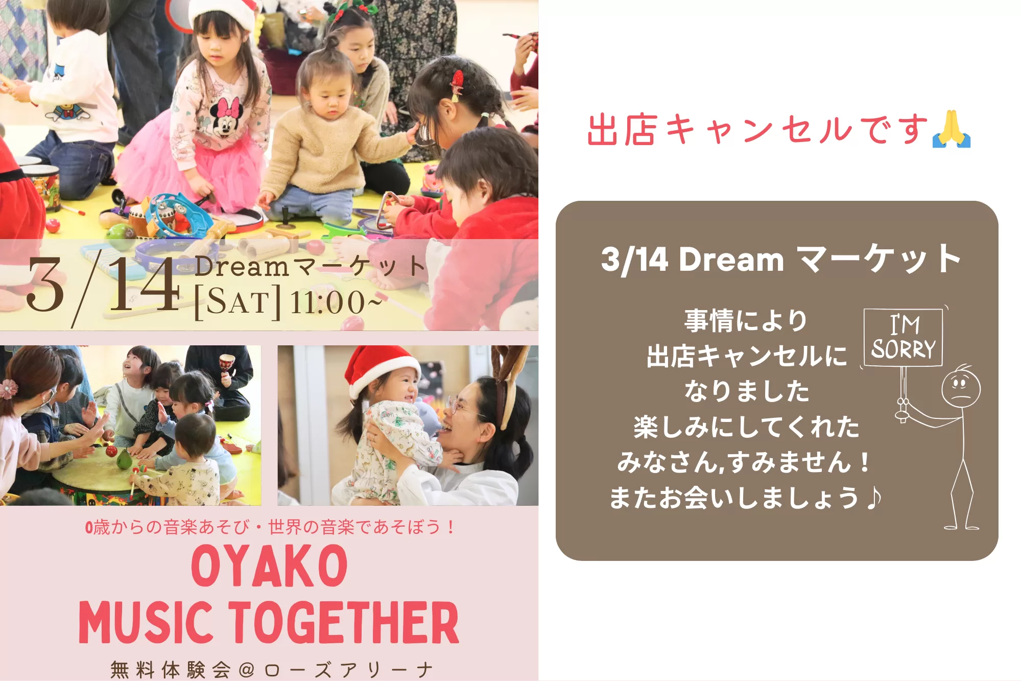 島田市総合スポーツセンター「ローズアリーナ」で開催されるDreamマーケット2026でのOyako Music Together 無料体験会 は事情によりキャンセルとなりました🙏