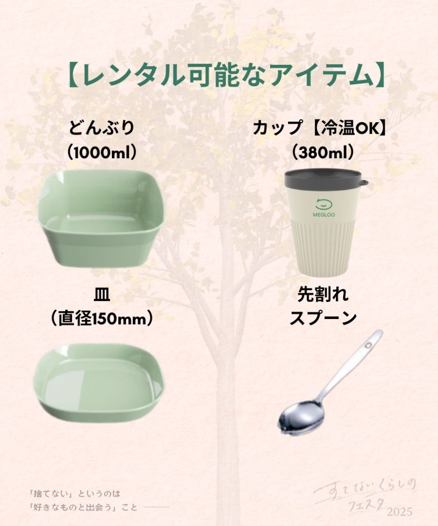 美味しいお店もいっぱい出ます!でも!使い捨て容器での提供はないためマイ食器をもってきてね。(どんなお皿でもOK!)
