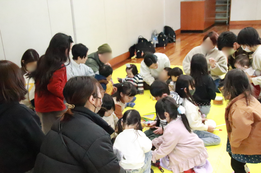 初めての場所でも、初めての曲でも、大好きなお父さん・お母さんのお膝の上なら安心して音楽を楽しむ事ができます。
