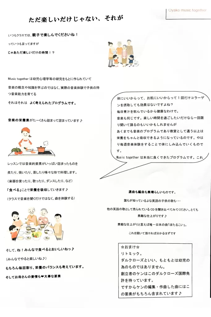 あくまでも音楽のプログラムであり教室として通う以上は栄養をちゃんと吸収できるようになっているのです。