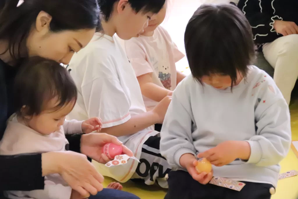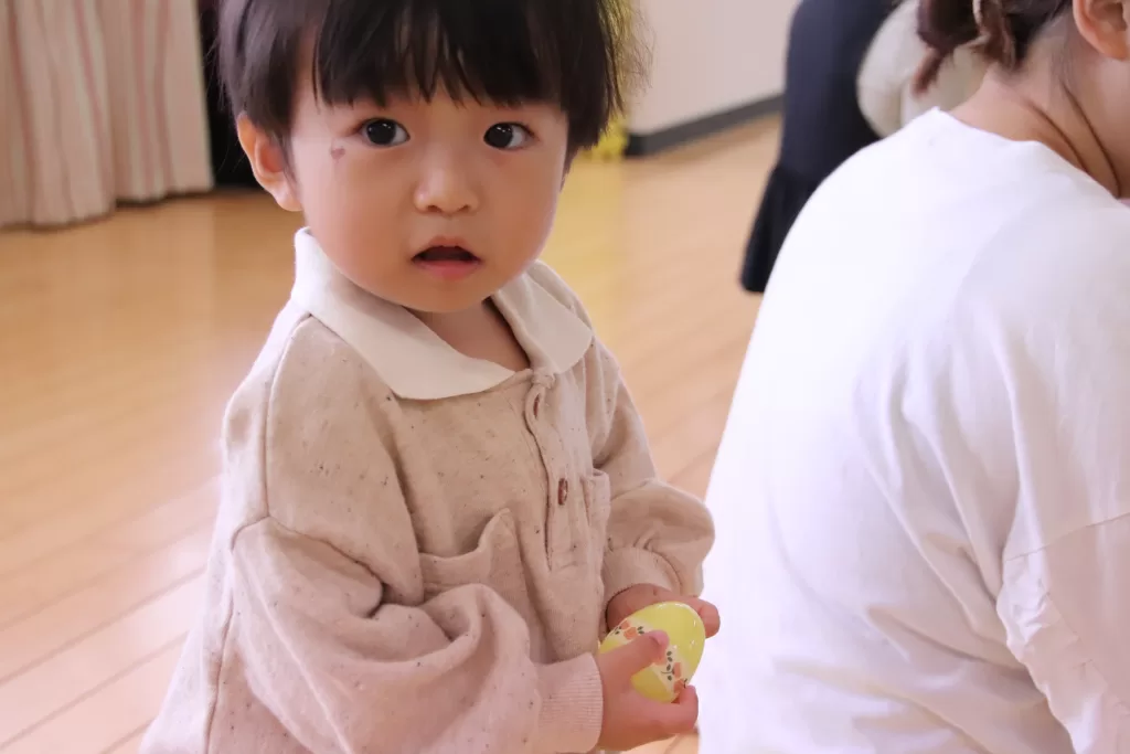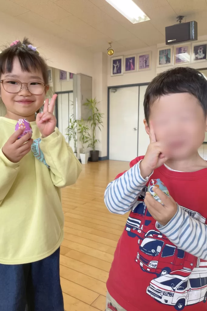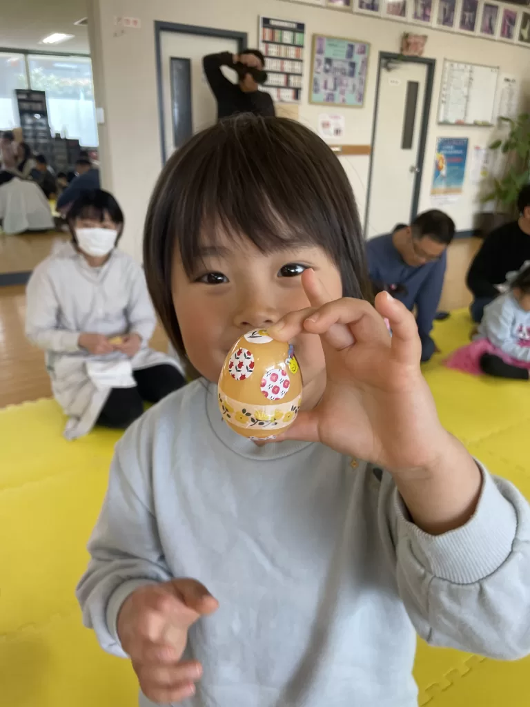 小さなカラフルなたまごがお教室に隠れているので、みんなで探しました♪