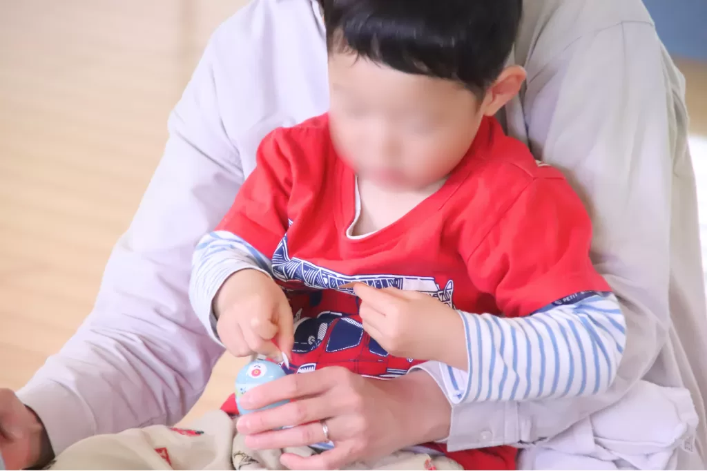 少し大きな子は自分でもできるので、自分のペースでペタペタ。