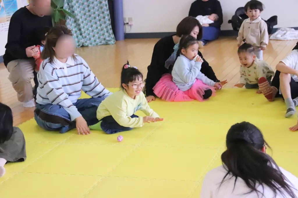 エッグシェーカーを振って輪になって、ぐるぐる回ったり、真ん中に集まったり