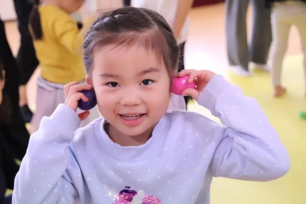 ただ楽しいだけ?のように見えますが、Music Together®ではプロップ(道具)を使うことで視覚的にもリズムを楽しめるようにしています。