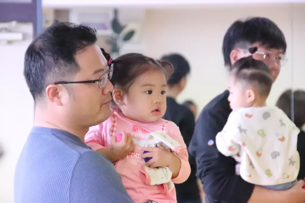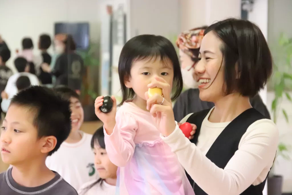 お父さんお母さんたちも、なんのためらいもなく一緒に踊ってくれるのがMusic Together®の楽しいところ。