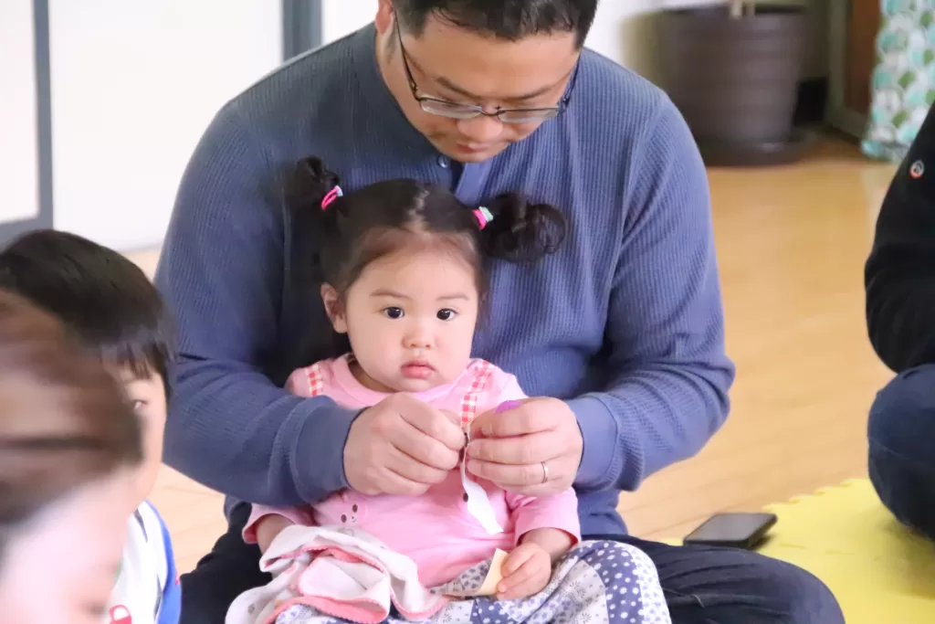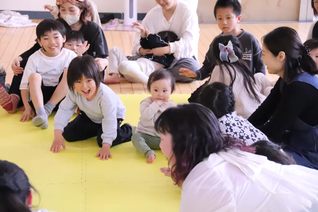 小さな赤ちゃんも大きなお兄ちゃんお姉ちゃんも、この膝の上での音楽あそびが大好き!