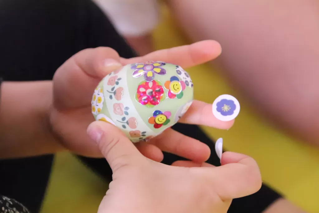 シールをペタペタ貼って自分だけのイースターエッグを作ります♪
