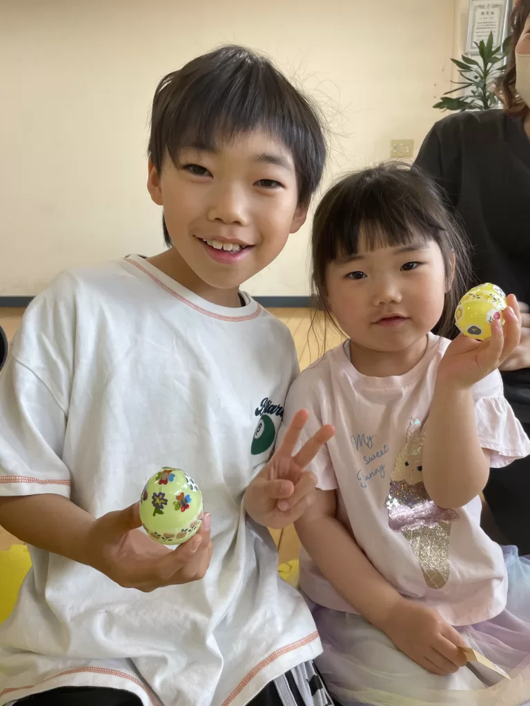 イースターハントで見つけたたまごにみんなで飾り付け。