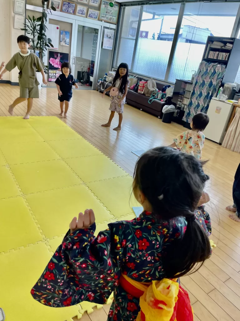 今回は子どもたちの好きなエビカニクスの盆踊りver.を踊りました。